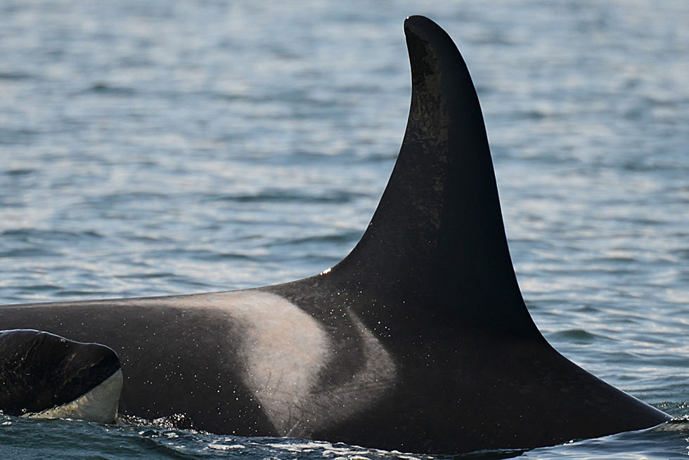 Like many other cetacean species, killer whales, also called orcas (Orcinus orca) can be identified on an individual basis by their natural markings and differences in fin shape. Orcas have an obvious dorsal fin that varies in shape and size, often with distinctive nicks or scars. The saddle patch also varies from individual to individual in shape, size, color, and scarring. In the case of the Southern Resident Killer Whales, individual identification allows us to maintain a precise census of the population where every individual is known and accounted for.